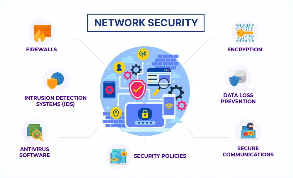 We provide advanced network security solutions to protect your IT systems from cyber threats and unauthorized access. Our services include firewalls, intrusion detection and prevention systems, VPNs, endpoint protection, and continuous network monitoring.